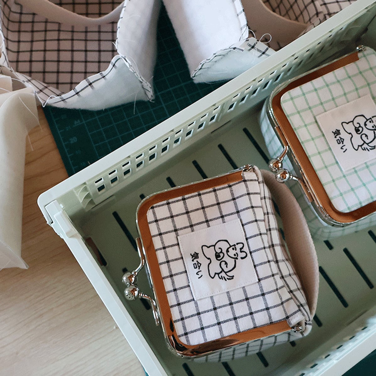気合いポーチ (黒チェック)